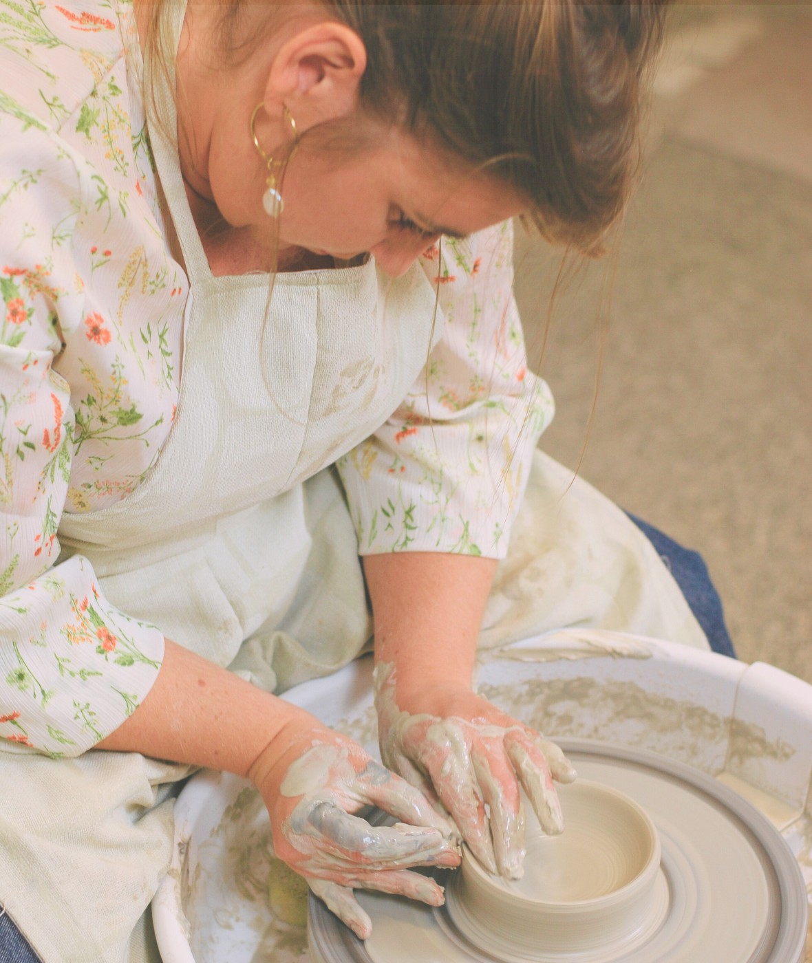 In 2022 I discovered pottery. A friend invited me to a wheel-throwing class, and it was a true revelation. I was so hooked after the very first session that I borrowed her wheel, set it up in my bathroom, and began teaching myself by experimenting and watching YouTube videos.